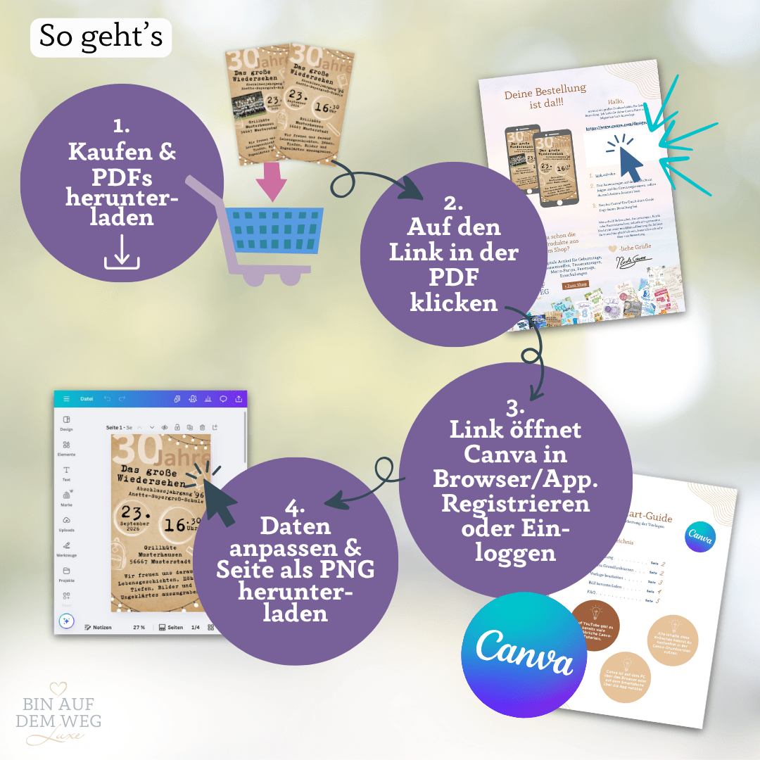 1️⃣ Nach dem Kauf erhältst du eine PDF mit dem Canva-Link