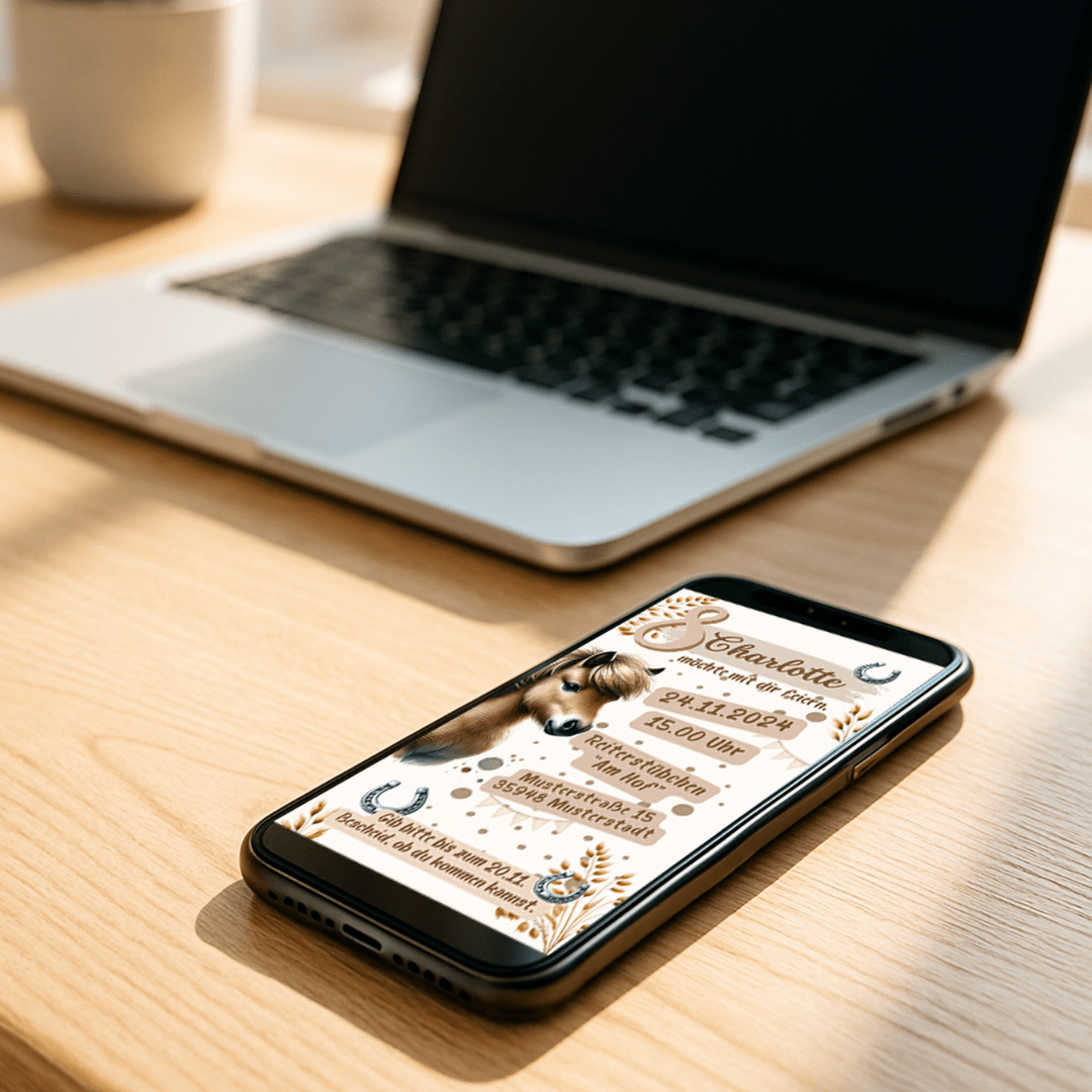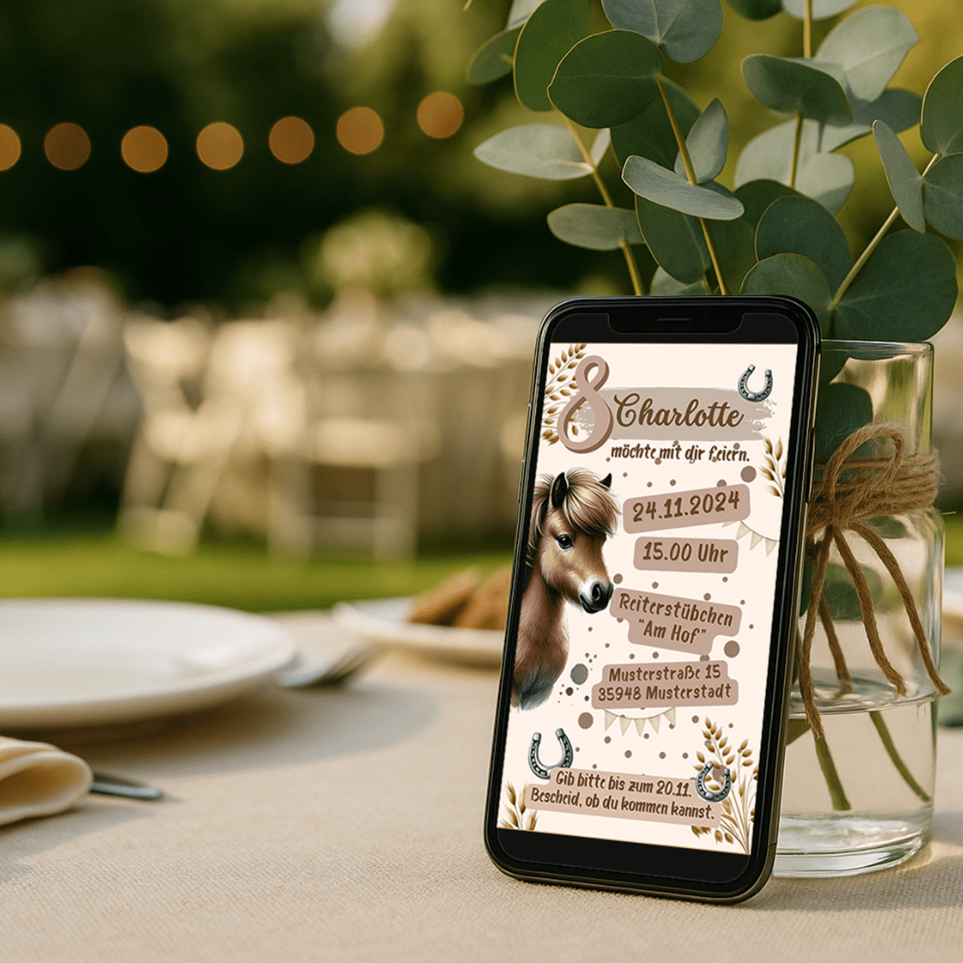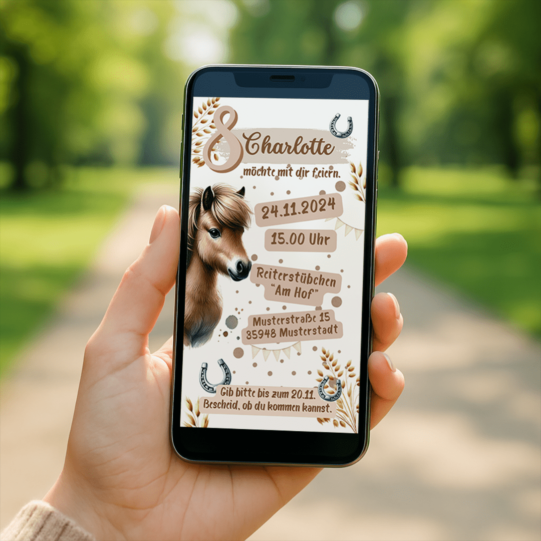 Mit dieser liebevoll gestalteten Einladung im Pferde-Design wird der Kindergeburtstag schon beim Einladen zum Highlight.