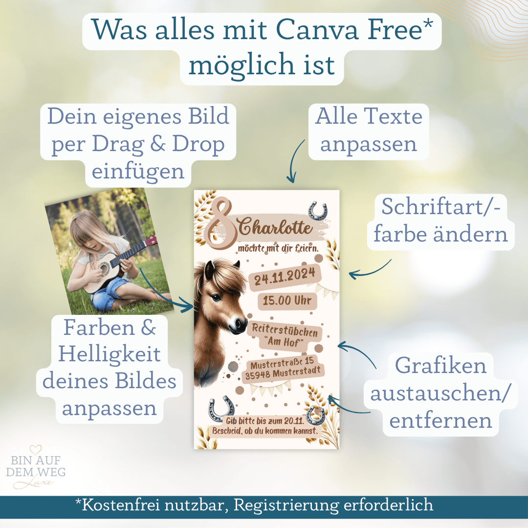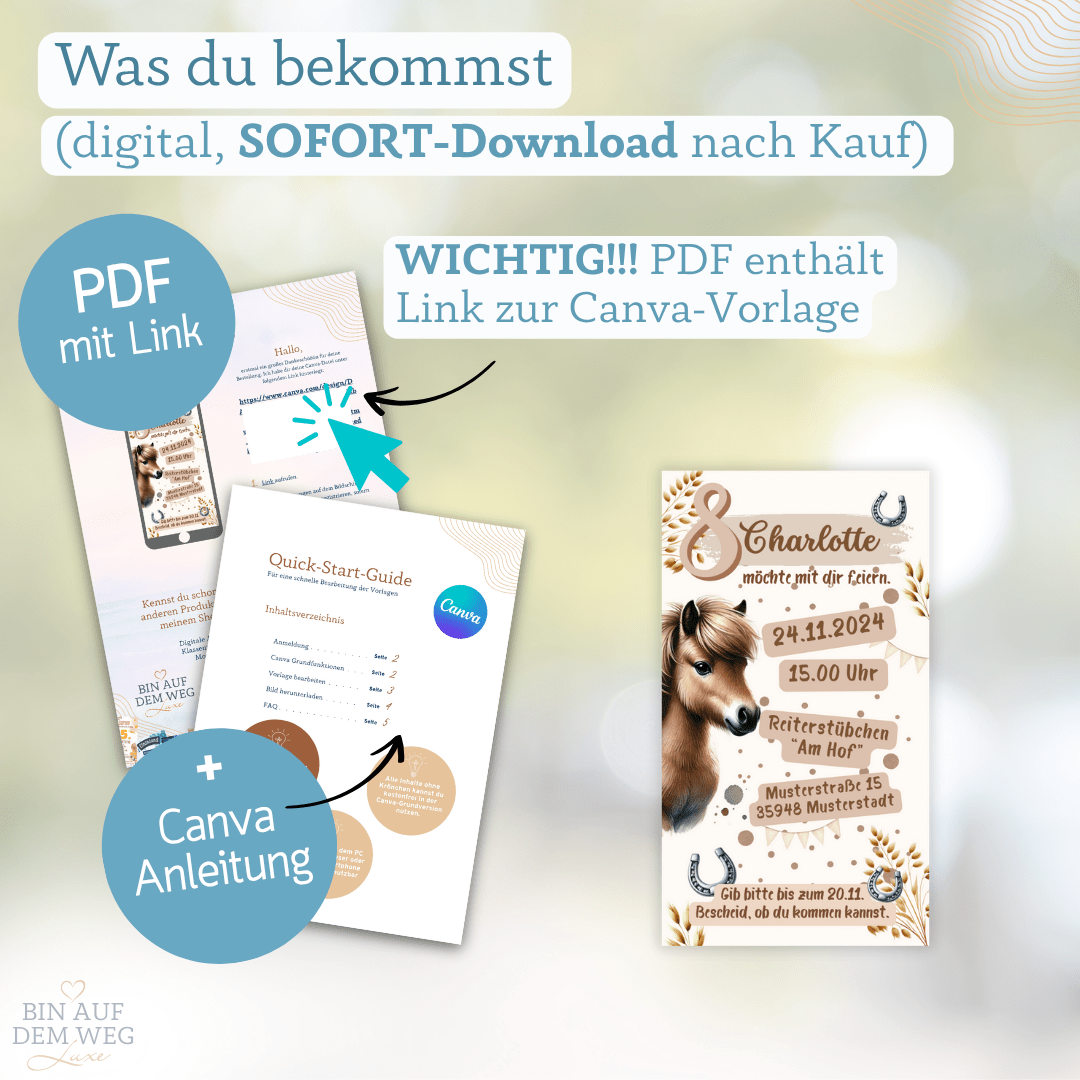 Pferde-Einladung zum Kindergeburtstag š“ ā liebevoll gestaltete Canva-Vorlage zum Selbstanpassen.