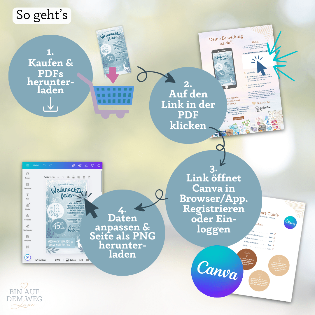 1️⃣ Nach dem Kauf erhältst du eine PDF mit dem Canva-Link
