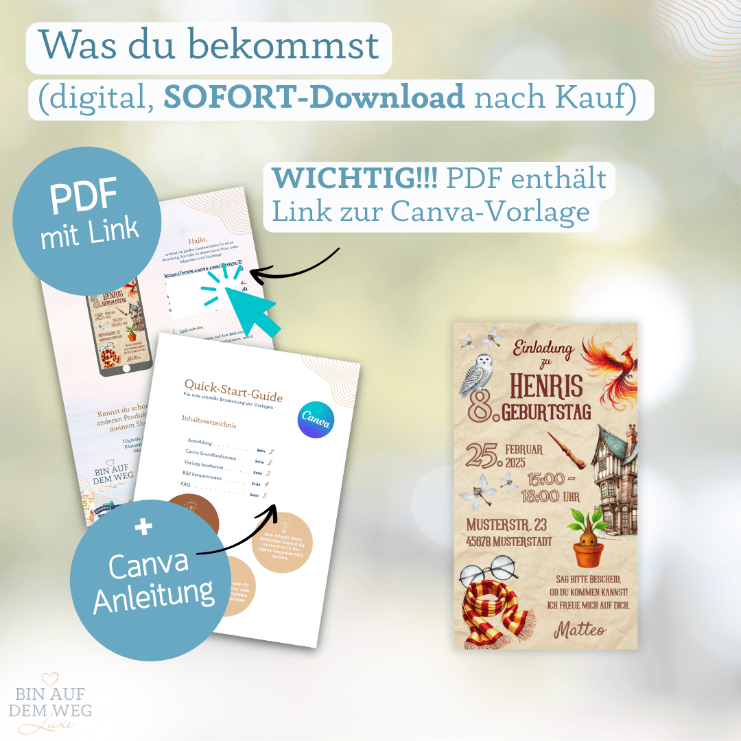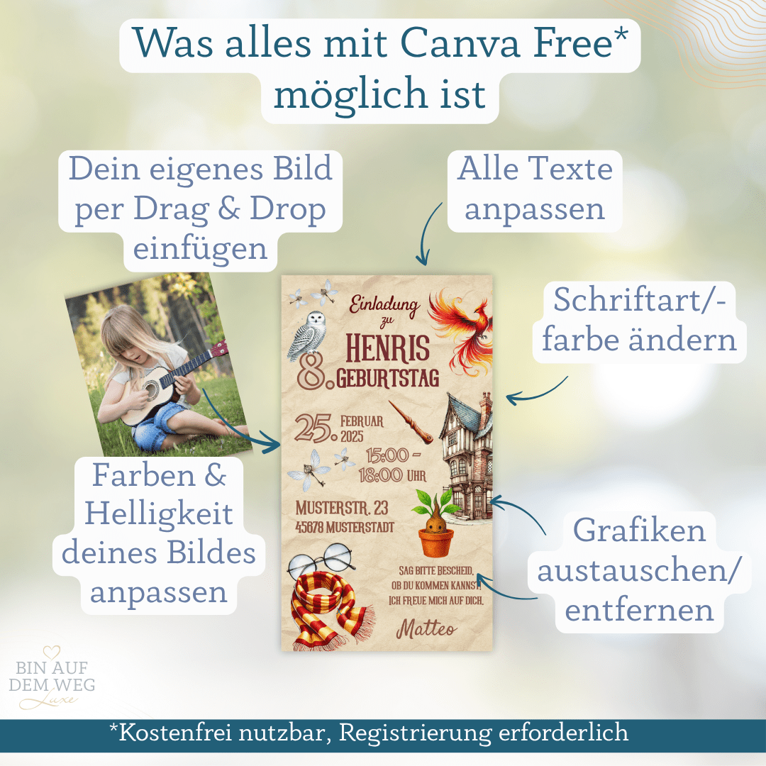 Einfach bearbeiten, speichern & verschicken. Perfekt für kleine Magier und Geburtstagszauberer. ✨