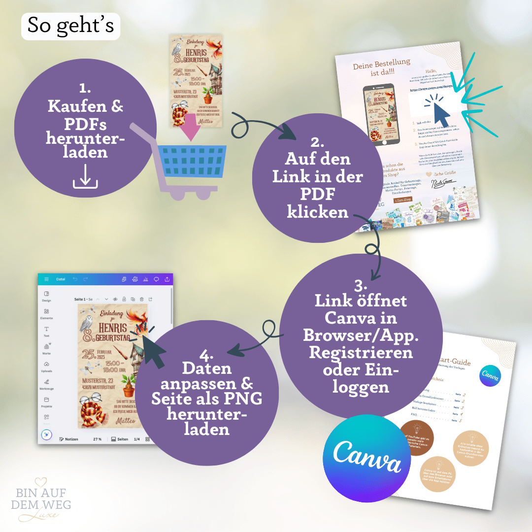 Nach dem Kauf erhältst du eine PDF mit dem Canva-Link