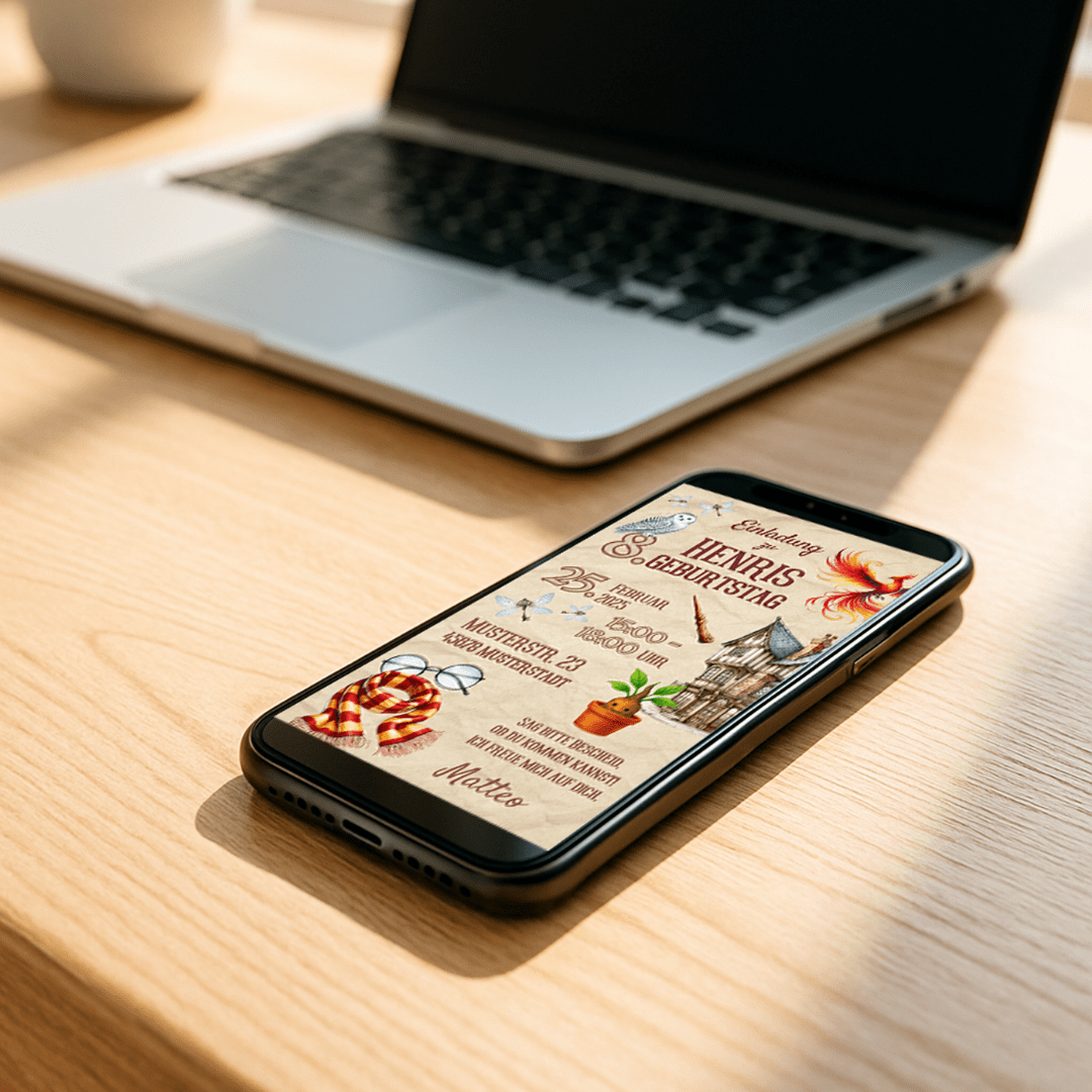 Einmal mit dem Zauberstab gewedelt – und schon landet die perfekte Einladung auf dem Bildschirm! ✨
